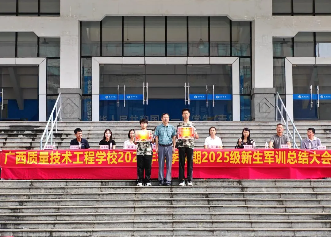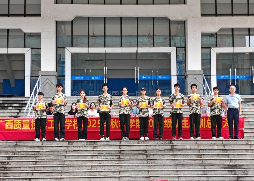汇演结束后,韦中新宣读了表彰决定,与会领导为本次军训中表现突出的“军训先进班级”和“军训标兵”颁发奖状。
