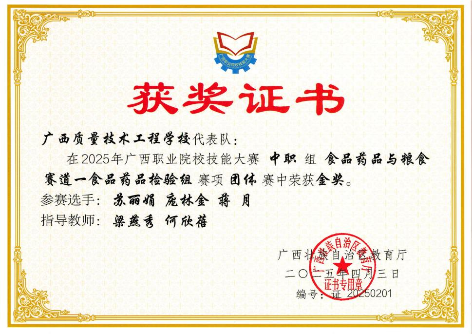 2025年广西职业院校技能大赛中职组食品药品与粮食赛道食品药品检验组金奖
