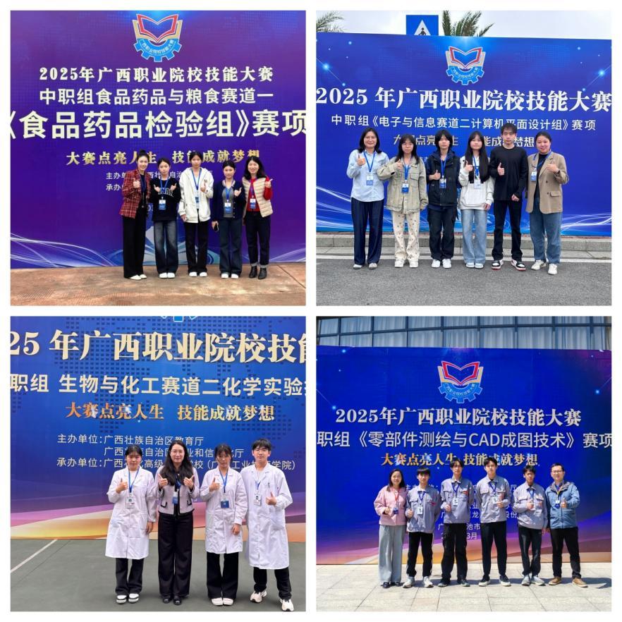 2025年,学校成功承办广西职业院校技能大赛“食品药品检验”赛项,师生团队凭借扎实专业功底,斩获金奖2项,铜奖2项。同时,创新创业教育也取得扎实成效,学校在中国国际大学生创新大赛(2025)“建行杯”广西赛区选拔赛中,首次参赛就实现了在该赛事中奖项“零突破”,获银奖1项;在第九届中华职业教育创新创业大赛中获铜奖1项。标志着学校在探索培养中职学生创新创业素养、搭建实践育人平台方面迈出了坚实一步。此外,学校积极参与自治区市场监管局“AI赋能千行百业超级联赛市场监管服务创新应用大赛”,主动探索从竞赛准备到课堂实践的“AI+专业教学”创新路径。